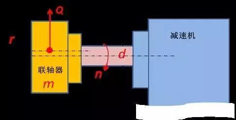 旋轉(zhuǎn)零件的靜平衡或動(dòng)平衡不好,將會(huì)使旋轉(zhuǎn)零件產(chǎn)生離心力,增加了軸的附加應(yīng)力,從而影響軸的強(qiáng)度。圖為半聯(lián)軸器——軸——減速機(jī)的配置關(guān)系,圖中半聯(lián)軸器質(zhì)量有點(diǎn)偏心。